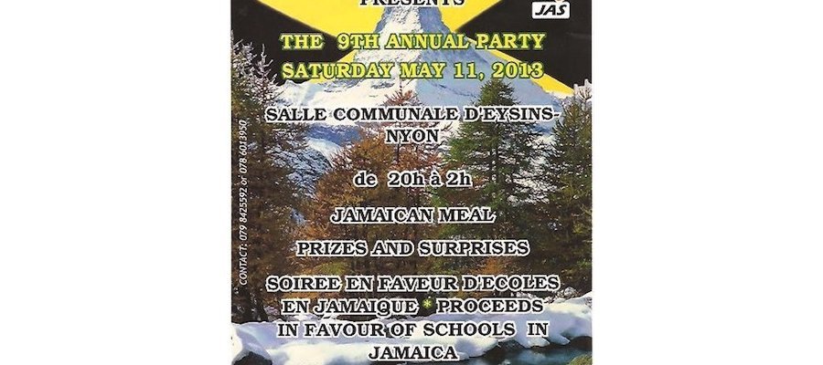 L’Association jamaïcaine en Suisse (JAS) tiendra sa collecte de fonds et fête annuelle le samedi 11 mai, à la Salle communale d’Eysins, au dessus de Nyon.