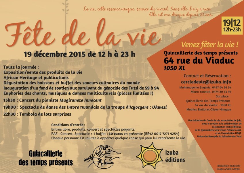 Dégustation des boissons et buffet des saveurs culinaires du monde Inauguration d’un fond de soutien aux survivant du génocide des Tutsi de 59 à 94 Euphories des chants, musiques & danses multiculturels (places limitées !)