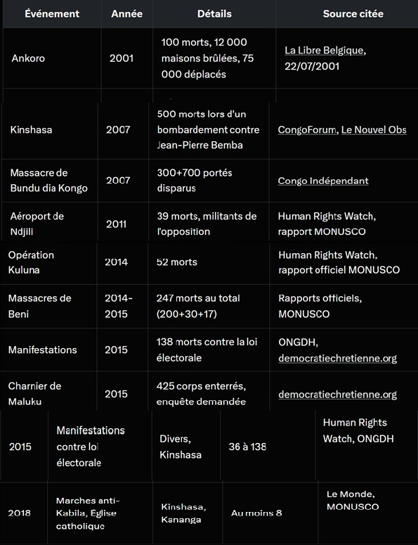 L’HERITAGE SANGLANT DU REGIME KABILA : UNE CHRONIQUE DE SES CRIMES DE MASSE DOCUMENTES