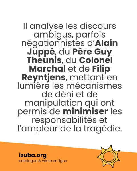 Le livre dénonce avec force la manipulation médiatique de la presse américaine qui a réduit le génocide à une « guerre tribale », tentant de disculper la Communauté internationale de son inaction. Il analyse les discours ambigus, parfois négationnistes d’Alain Juppé, du Père Guy Theunis, du Colonel Marchal et de Filip Reyntjens, mettant en lumière les mécanismes de déni et de manipulation qui ont permis de minimiser les responsabilités et l’ampleur de la tragédie. Antoine Mugesera explore également les lettres d’aveux et les plaidoyers de culpabilité des génocidaires qui cherchent à obtenir la clémence des Tribunaux Gacaca.